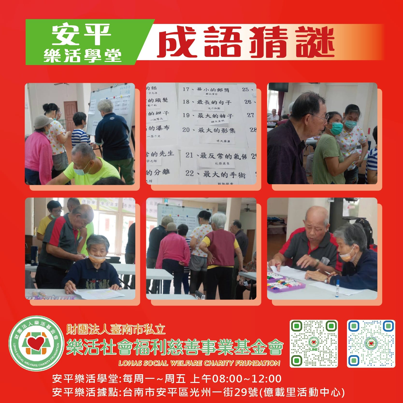 【安平樂活學堂】成語猜謎 基金會活動花絮及成果, 活動花絮By happylifegroup23 4 月, 2021在進入今天的安平樂活學堂之前 先來考考大家幾個成語猜謎最小的郵筒是什麼?最宏亮的叫聲又有多宏亮呢? 這些問題對…