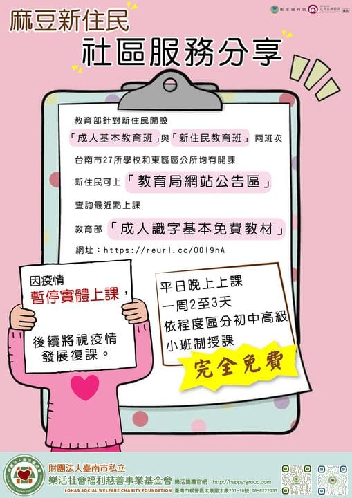 新住民阿嬌想學中文,來”樂活麻豆新住民據點”詢問,不知道政府有提供什麼協助? 樂活志明…