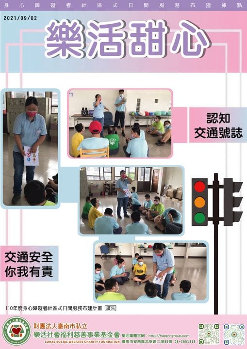 一起快樂的一邊玩一邊學習交通號誌吧 樂活甜心的專業工作人員引導服務對象進行交通安全的訓練, 除了教導服務對象交…