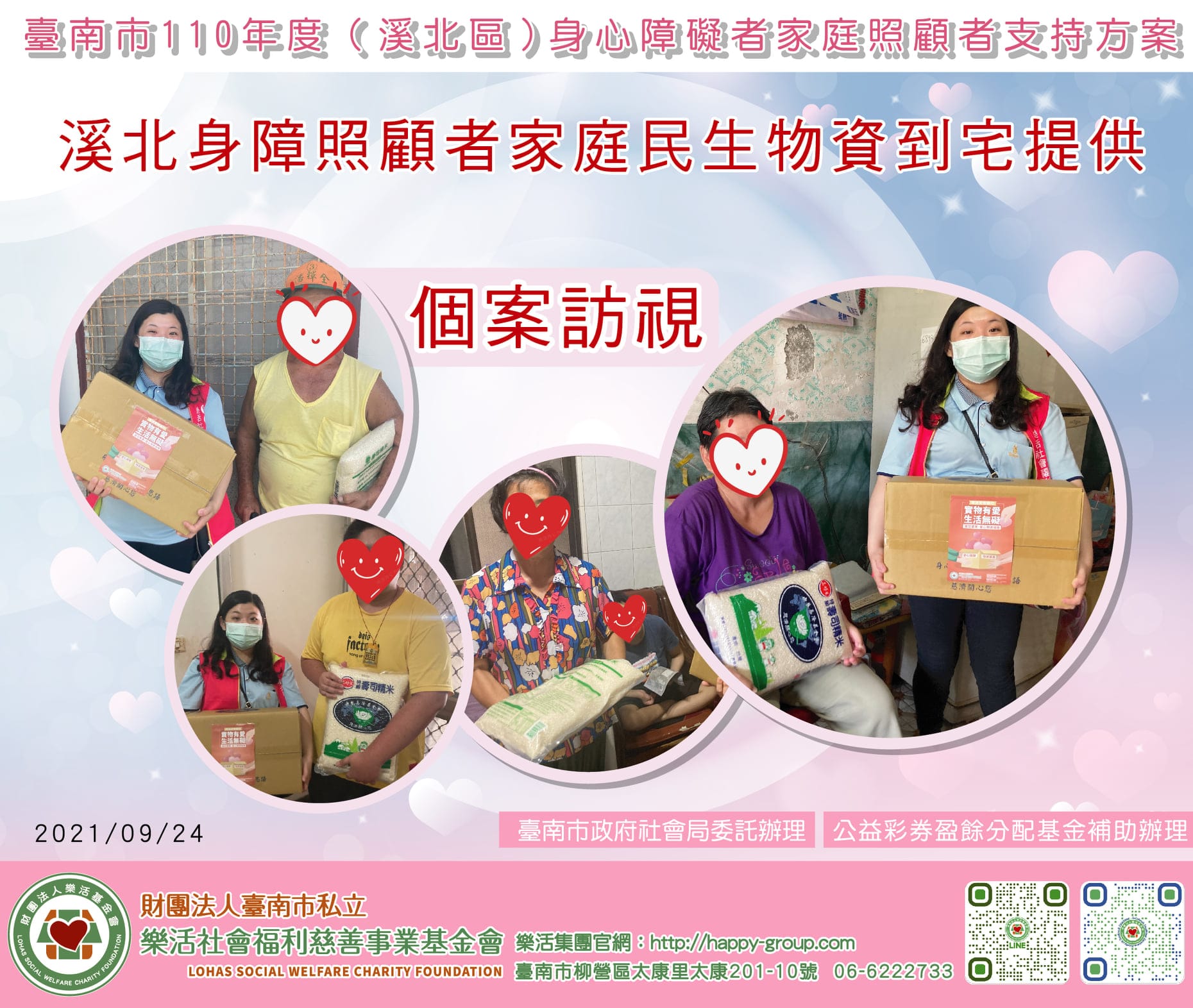 【身心障礙者家庭照顧者支持服務】 基金會, 基金會活動花絮及成果, 活動花絮By happylifegroup27 9 月, 2021溪北身障照顧者家庭民生物資到宅提供 在台南的溪北區,有許多的身障者照顧家庭因為需要無時無刻的照顧著家人,加上居…