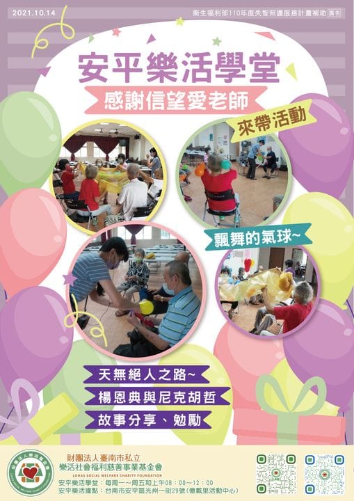 感謝信望愛團隊的帶領 使大家都能有不一樣的經驗 期待明天的活動 安平失智據點依COVID-19防疫管理指引 服…