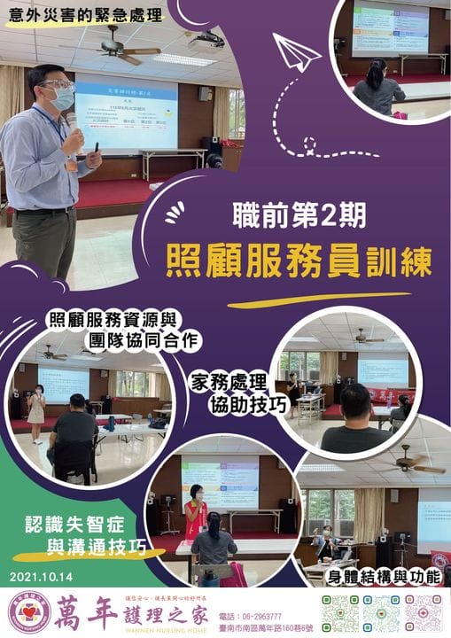 今天課程有專業師資來教導各位學員, 身體結構與功能、家務處理協助技巧、認識失智症與溝通技巧、 照顧服務資源與團…
