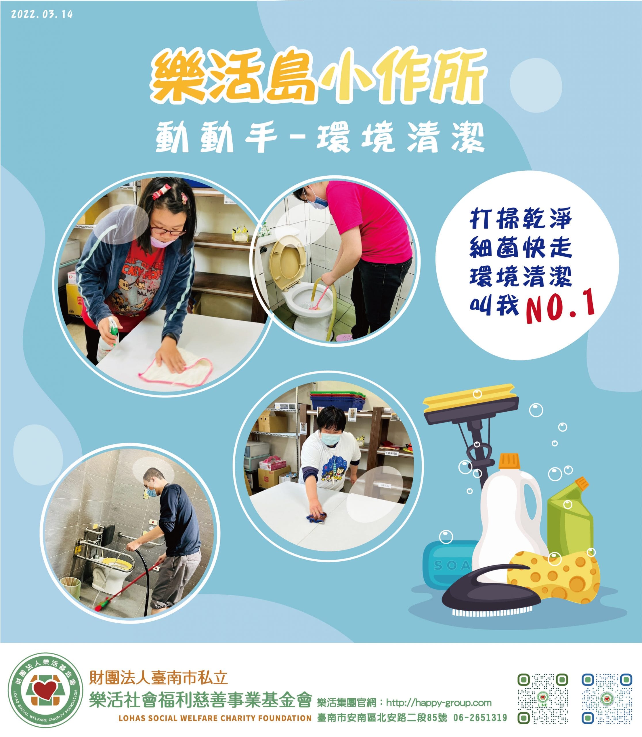 樂活島小作所就要做環境整理為了保持流暢的工作區域、提高工作效率樂活島智青對每一個常用的地方、器具都加強了清潔。…
