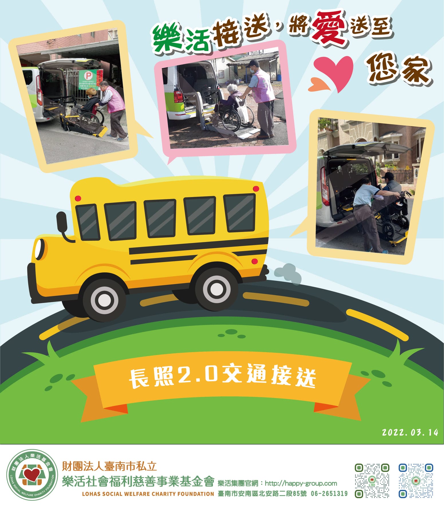 『長照2.0-樂活專車』 長照之路不孤單-您的最佳助力:交通接送服務 樂活除聘有親切專業的司機,每台專車亦配置…