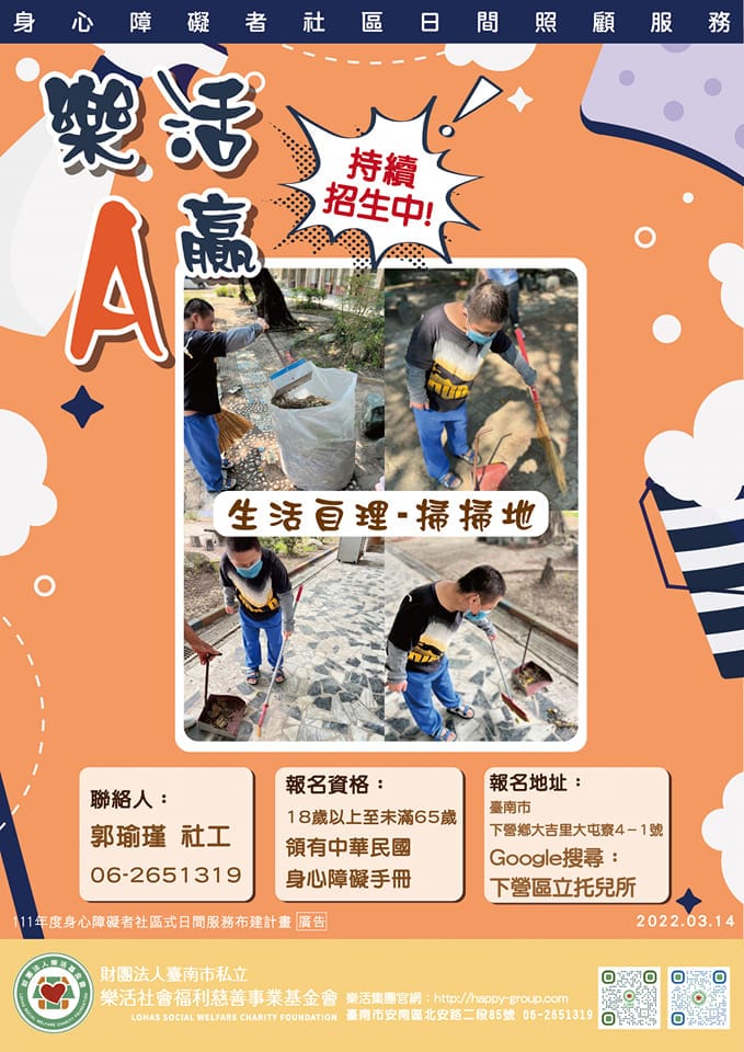 💟 樂 活 A 贏-乾 乾 淨 淨 💟機構外面滿滿落葉一掃而空,也有我們服務對象盡的心力唷,被誇獎到都害羞了起…
