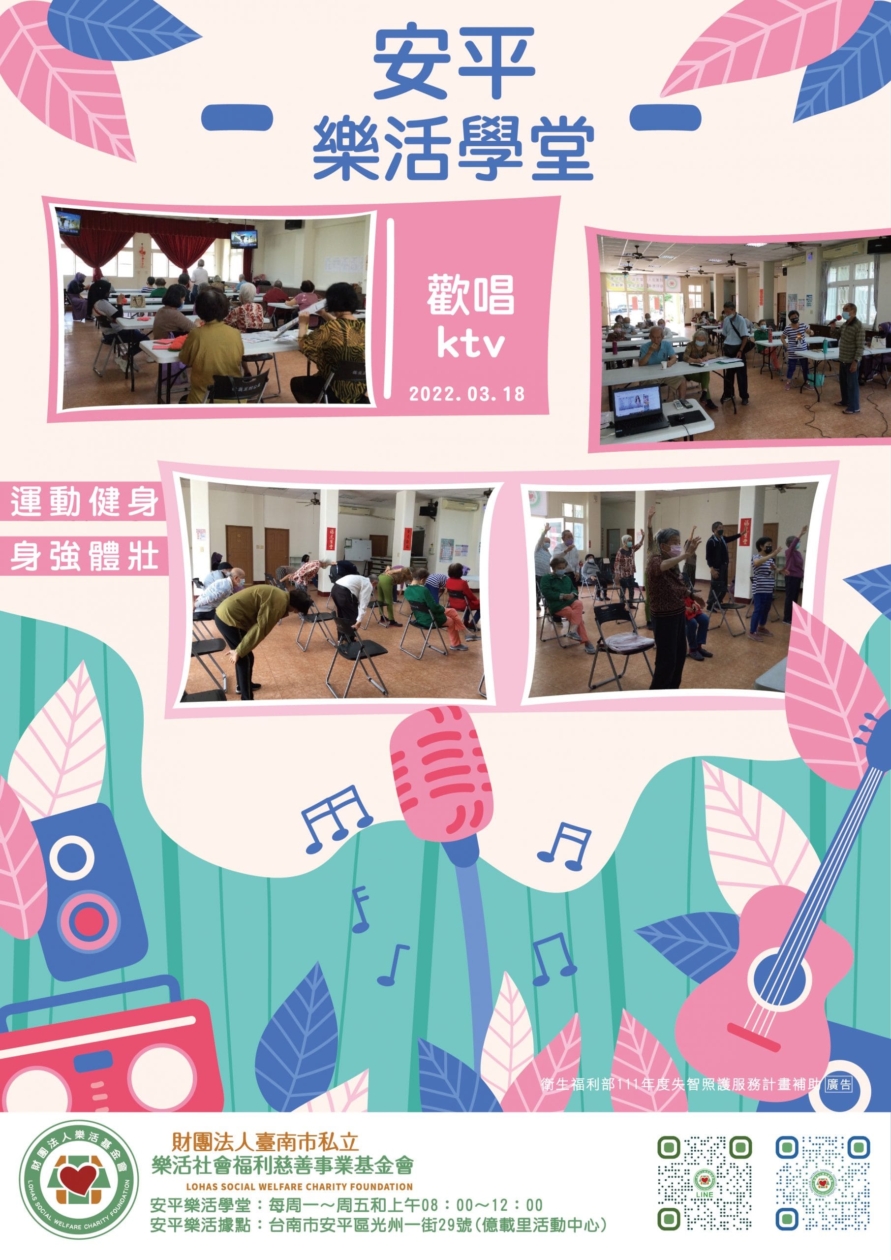 安平樂活學堂的億群好朋友 今天是歡唱KTV 可以聽別人唱也可以自己唱 大家都好認真享受 天天運動 健康身體 期…