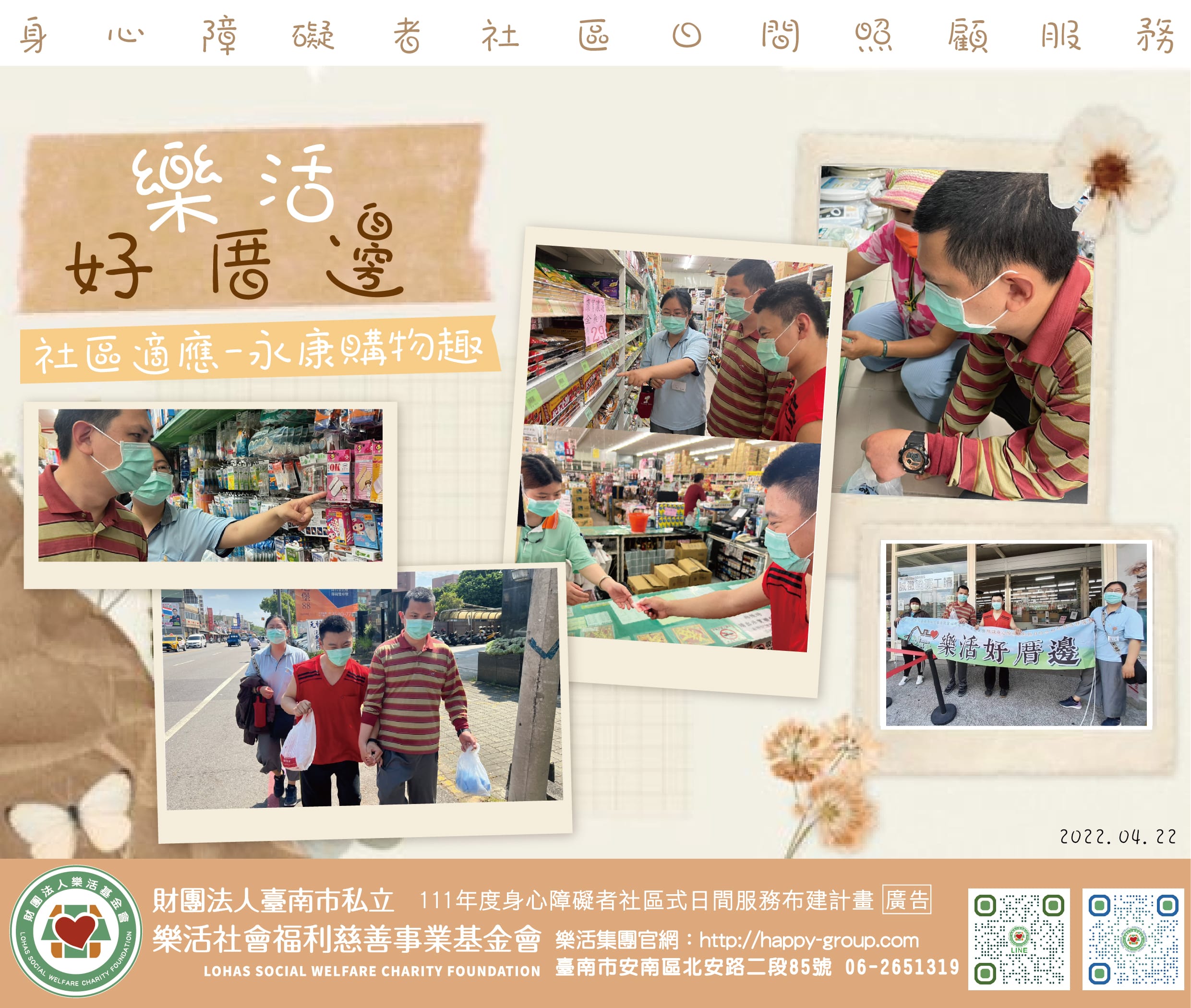 好厝邊的專業工作人員帶領夥伴們一起練習過馬路 練習查看紅綠燈與左右來車 夥伴們排隊在櫃台結帳購買物品 都是很有…