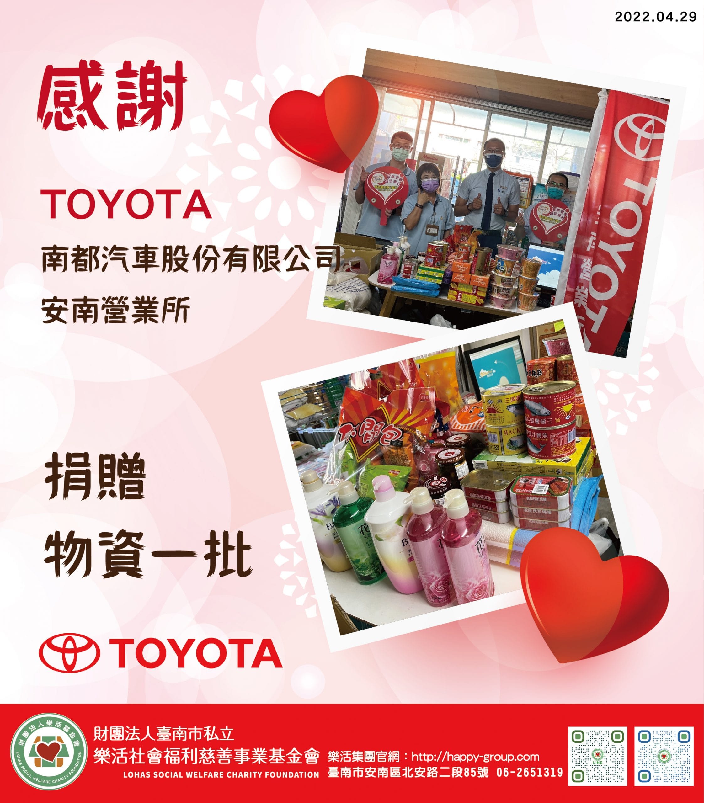 【樂活基金會】感謝TOYOTA南都汽車股份有限公司 安南營業所