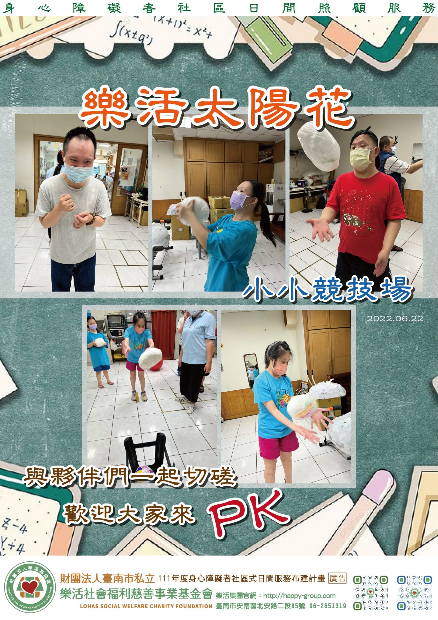 太陽花青年參加我們第一屆競技場比賽 我們的比賽項目有:「一起來托球,比青年們的手部穩定度與專注力 第二關「我是…
