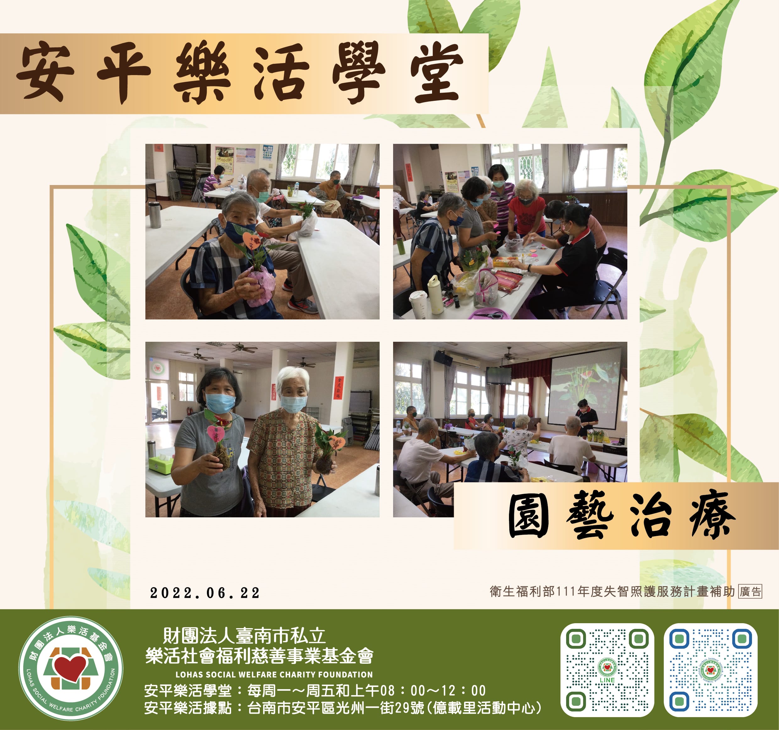 多元活動報到 豐富、多元、快樂、學習、成長 持續招生中 期待歡迎您的加入 只要是設籍在臺南市18歲到64歲 領…