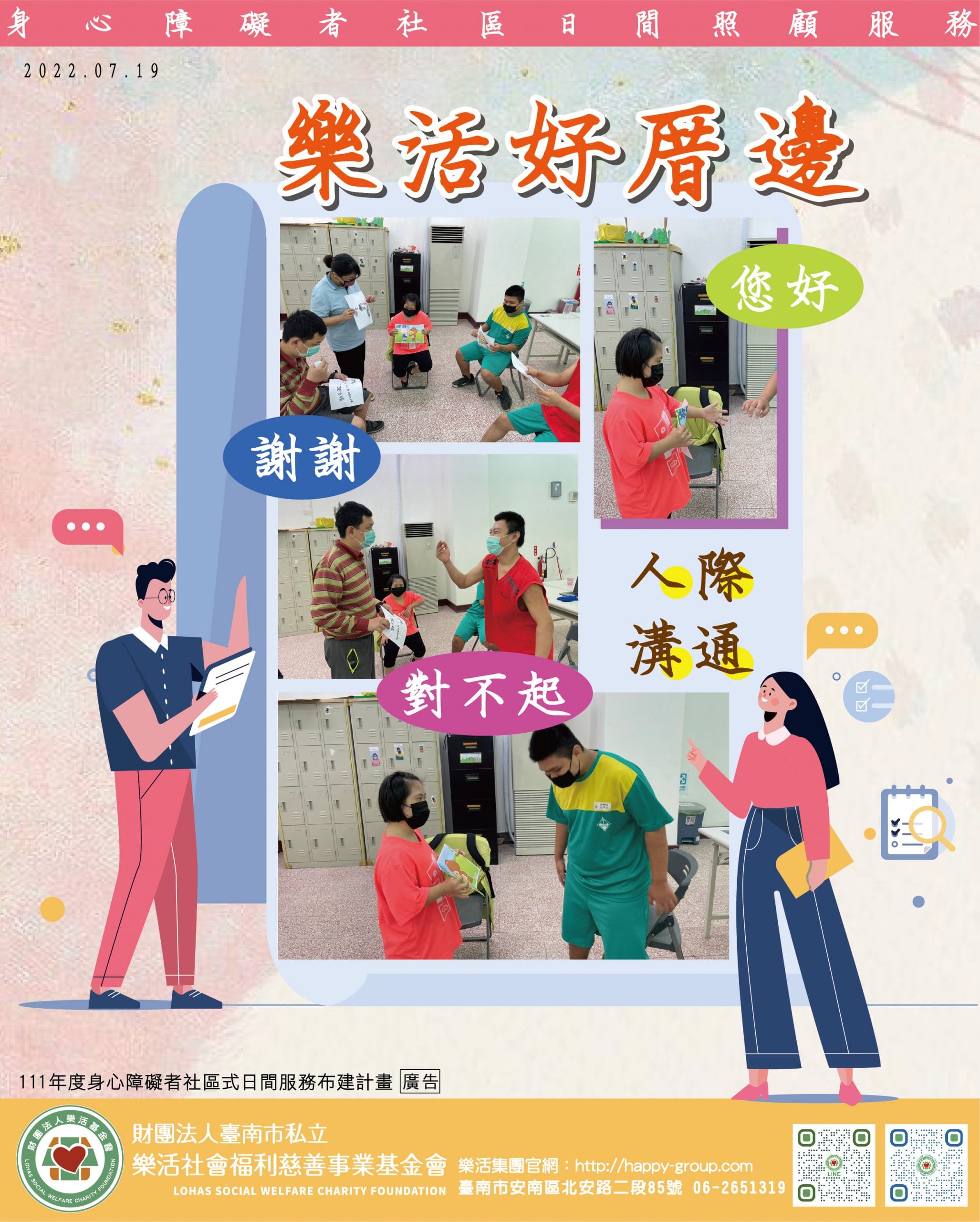 打招呼的用語是怎麼使用的呢 要用什麼語氣跟口吻打招呼呢 樂活好厝邊的專業工作人員帶領夥伴們 一起練習如何打招呼…
