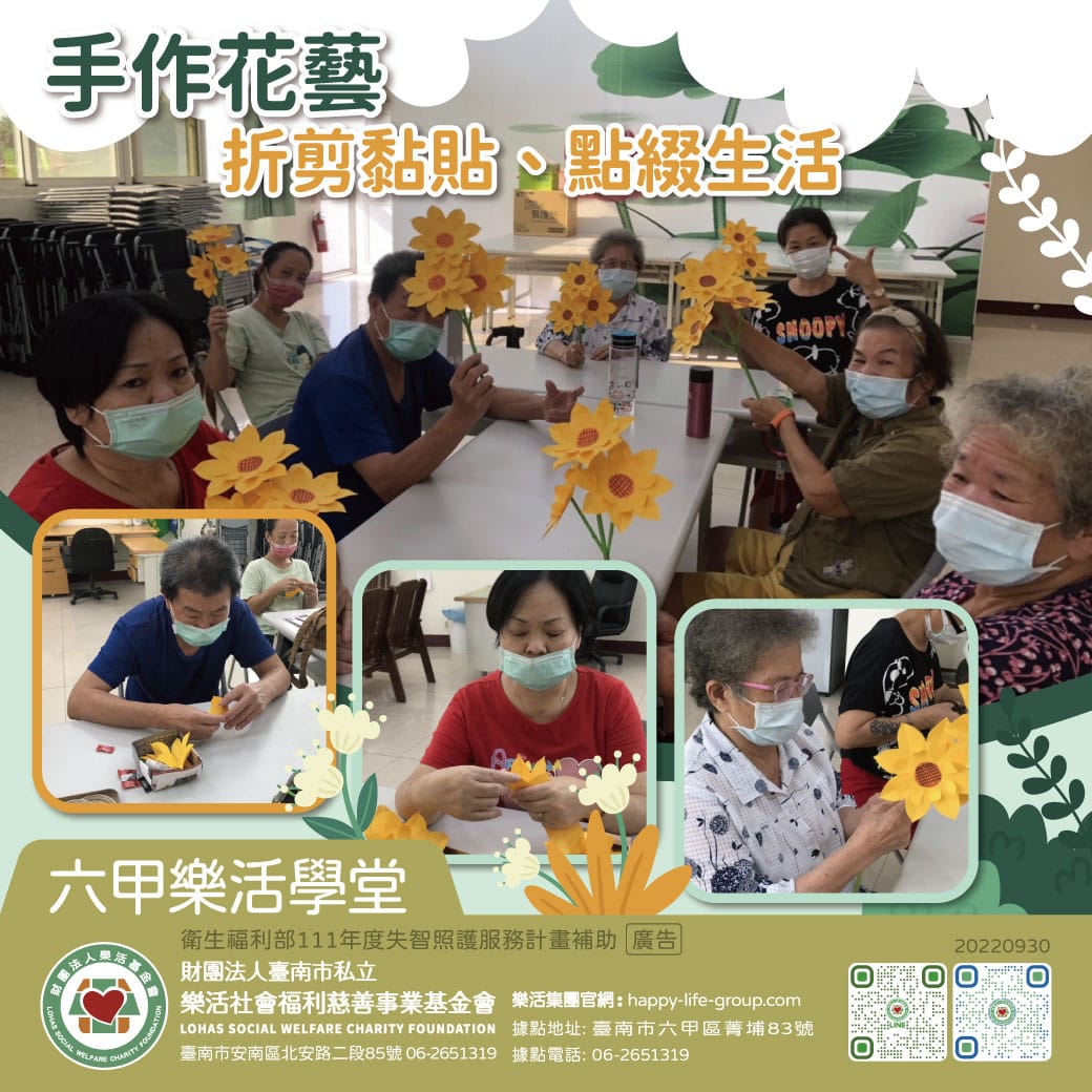 六甲樂活學堂 誰說一定要鮮花才好看? 看長輩們專注的神情 利用簡單的摺紙、剪貼 創造屬於自己的花花世界! 也可…