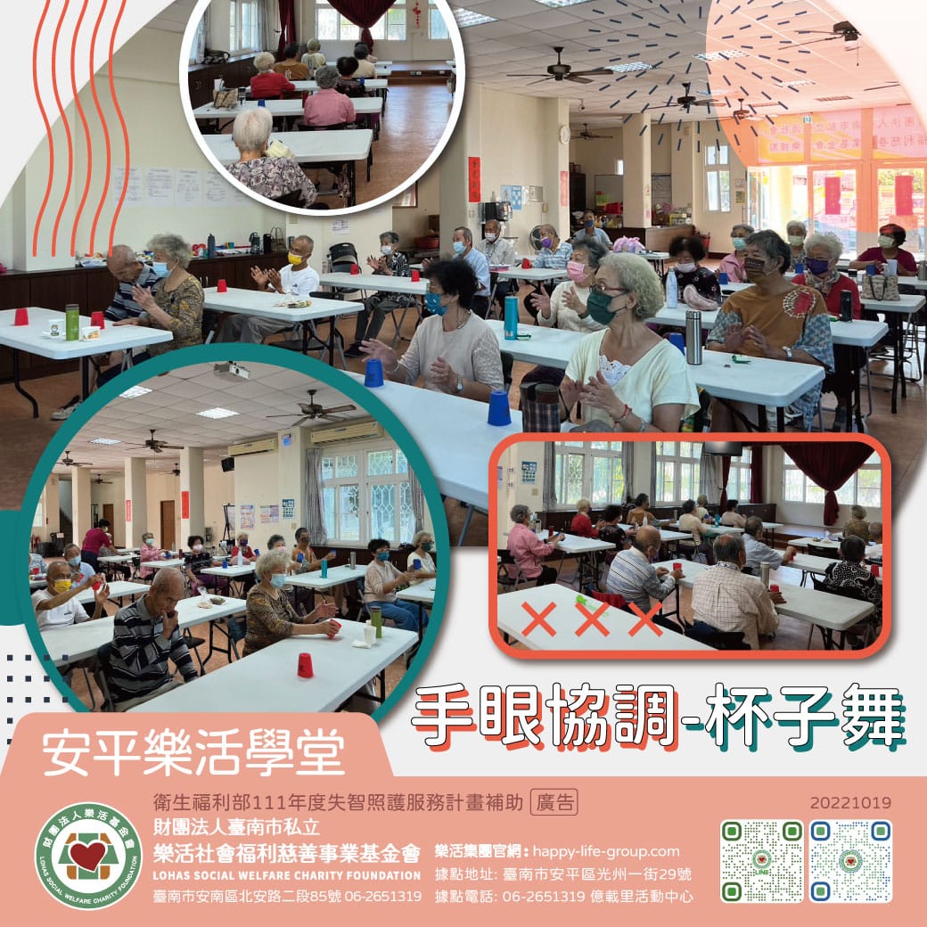 安平樂活學堂 【手眼協調-杯子舞】 配合音樂及節奏 長輩們跟著指令 一個一個往上疊 每一次成功疊上去 大家就好…