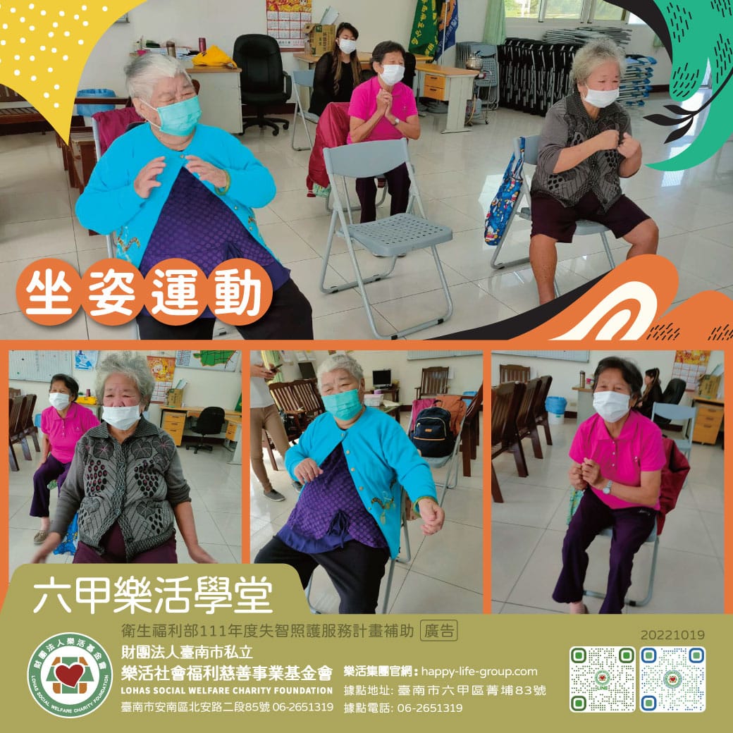 六甲樂活學堂 【今日課程:坐姿運動】 伸長手臂往左再往右 伸出長腳往下壓壓壓 轉轉頭扭扭腰 每天動一動才不會讓…