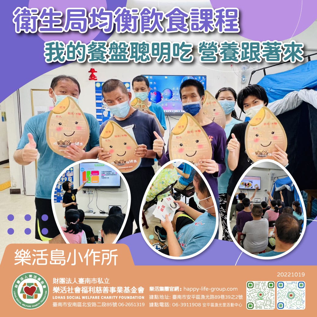 樂活島小作所 我的餐盤聰明吃 營養跟著來 讓智青透過口訣圖示及利用拳頭掌心瞭解每餐六大類食物量 培養智青建立正…