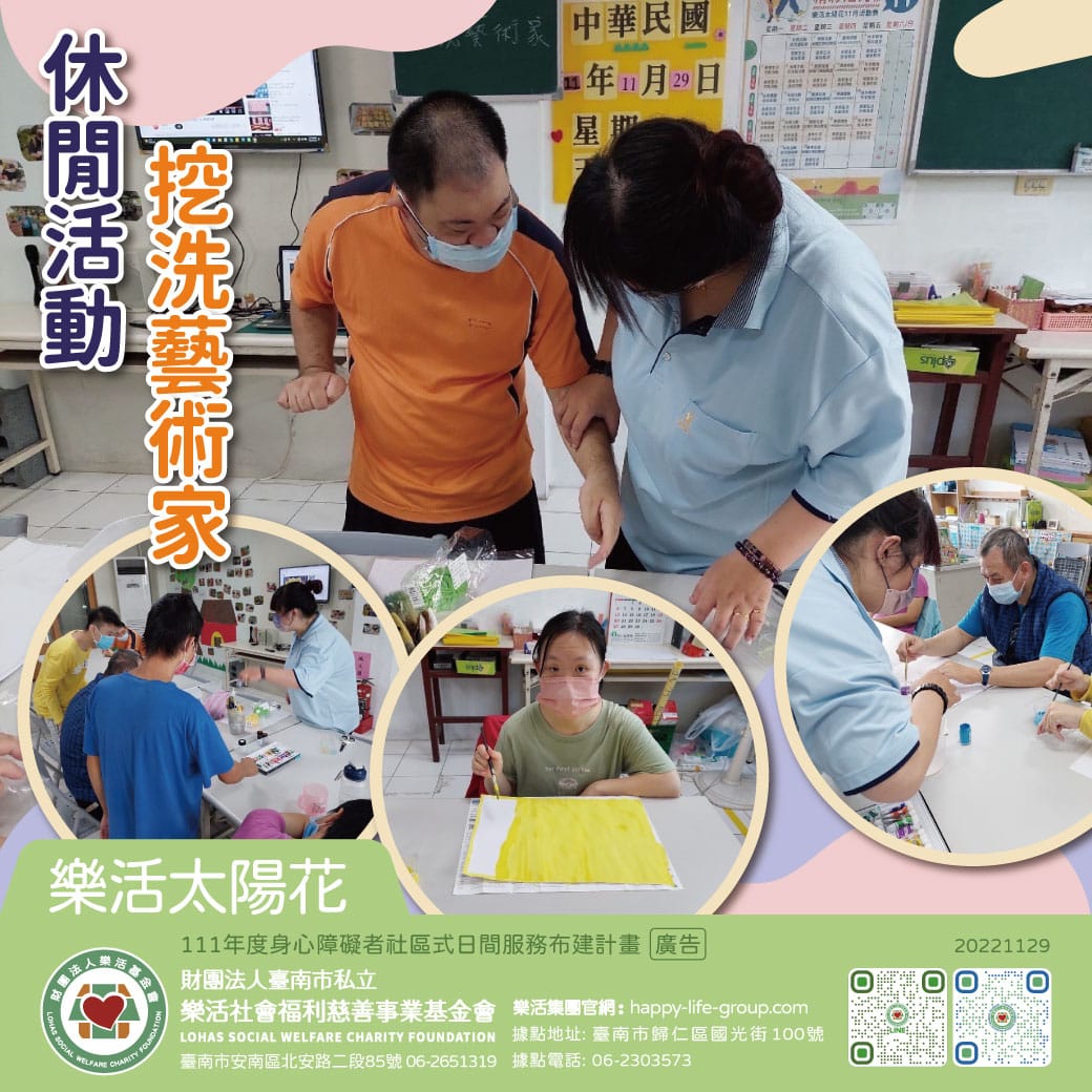 樂活太陽花 挖洗藝術家 今日藝術家落在誰身上呢 智青們今天以水彩作畫 並以釋迦種子及毛線裝飾 屬於自己的世界 …