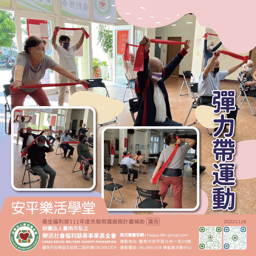 安平樂活學堂 【彈力帶運動】 透由輔具的使用 幫助長輩更能夠輕鬆的運動 讓大家可以快樂生活 期待明天的活動 &…