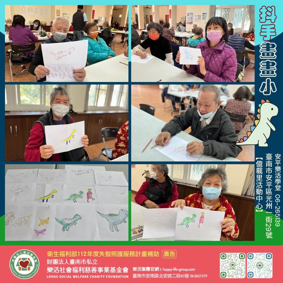 安平樂活學堂【抖手畫畫小恐龍】挑戰自己的美術天分,畫出屬於自己讀一讀二恐龍社工表示大家的手邊抖邊畫實在太可愛了…