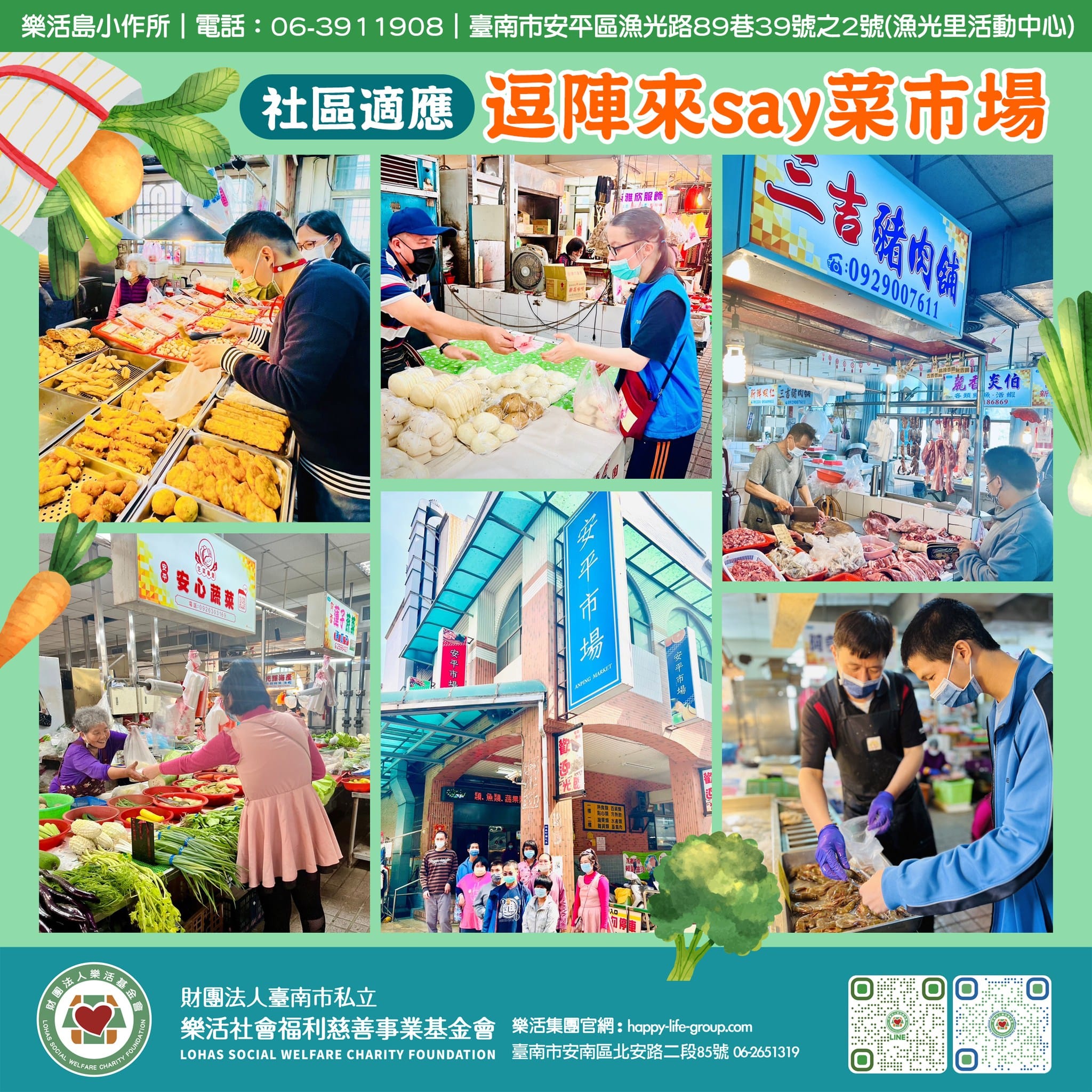 樂活島小作所社區適應逗陣來SAY菜市場一早來到人聲鼎沸的安平傳統市場琳瑯滿目的攤販 看得智青眼花撩亂想辦一桌樂…