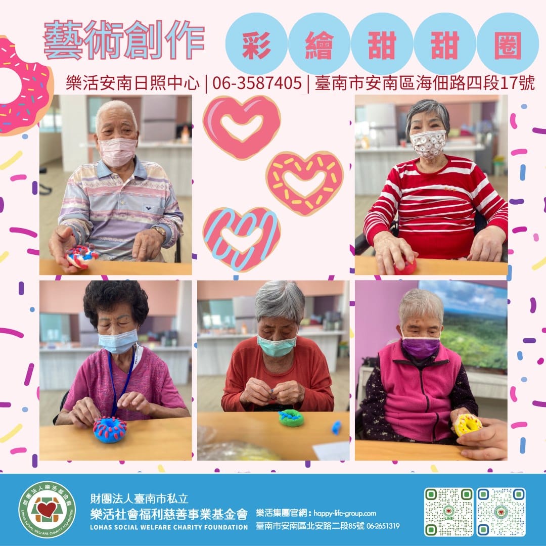 藝術創作-彩繪甜甜圈甜甜圈什麼阿公說著自己中風後手腳大不如前邊認真的作出了3D立體蛋糕甜甜圈完成超級特別的藝術…