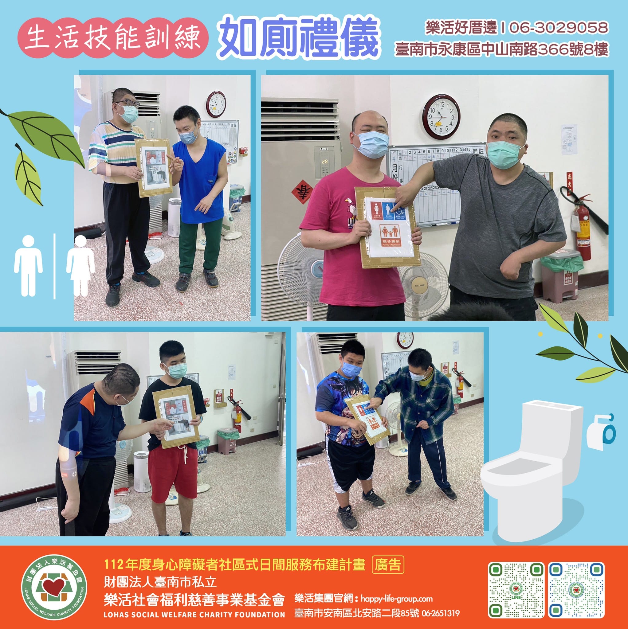 樂活好厝邊 ~熱烈招生中生活技能訓練-如廁禮儀上廁所不爭先恐後,使用廁所前要記得先敲門還有排隊哦!今天就來教…