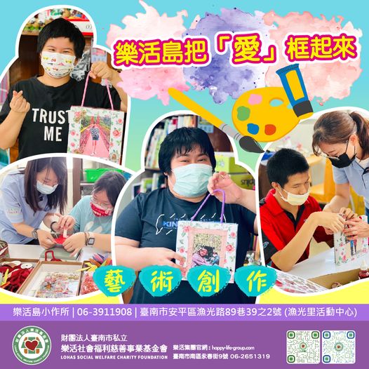 樂活島小作所 藝術創作 樂活島把「愛」框起來 智青們發揮無限創意, 將紙盒華麗轉身成為美麗的相框, 把愛框起來…