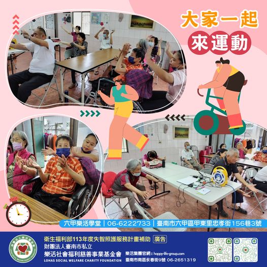 六甲樂活學堂 <大家一起來運動> 一兩三四 摎手拍啊拍 兩兩三四 兩腳跳啊跳 三兩三四 屎朏扭啊扭…
