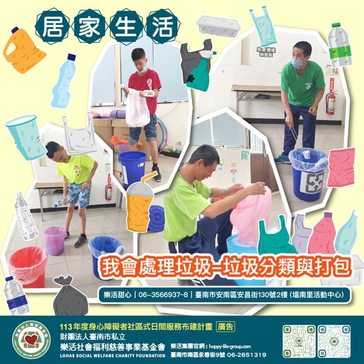 樂活甜心 居家生活-我會處理垃圾,垃圾分類與打包 甜心智青們學習資源回收,分辨可回收資源與一般垃圾,確實做好資…