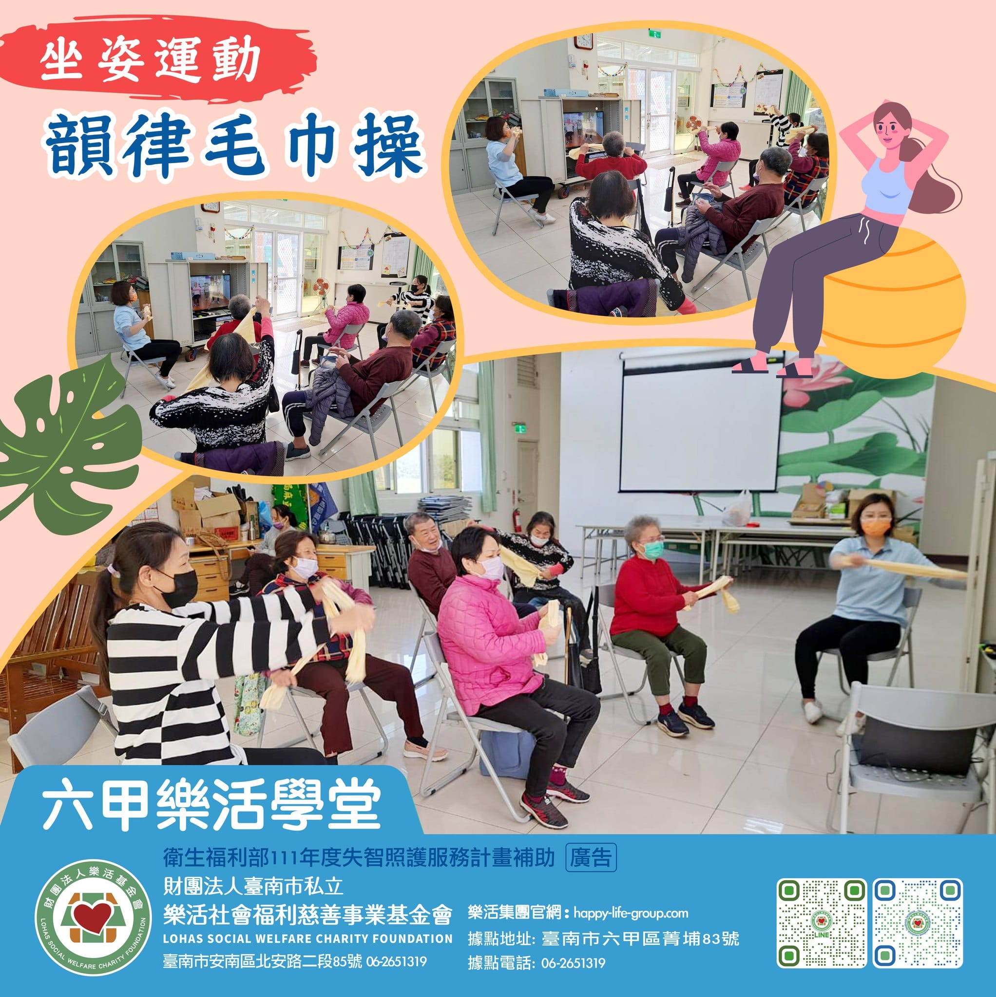 ~六甲樂活學堂~ 今日課程:坐姿運動 韻律毛巾操 好想運動,可是肯定又要花好多錢吧? 別擔心!來來來!讓阿公阿…
