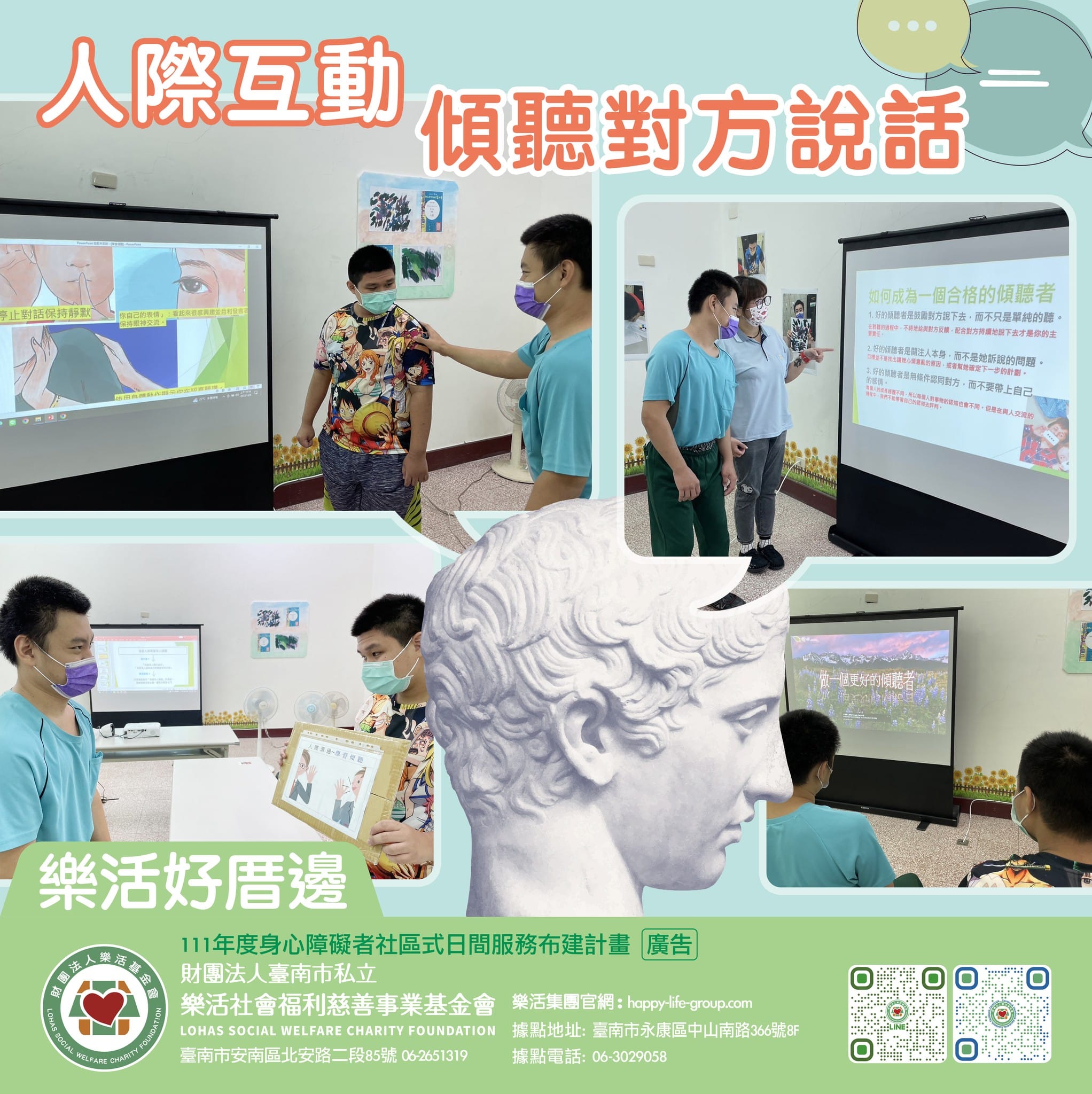 樂活好厝邊~持續招生中 人際互動 傾聽對方說話 你是否曾經苦惱 為何他都聽不進去我的話? 當我們學習仔細聆聽對…