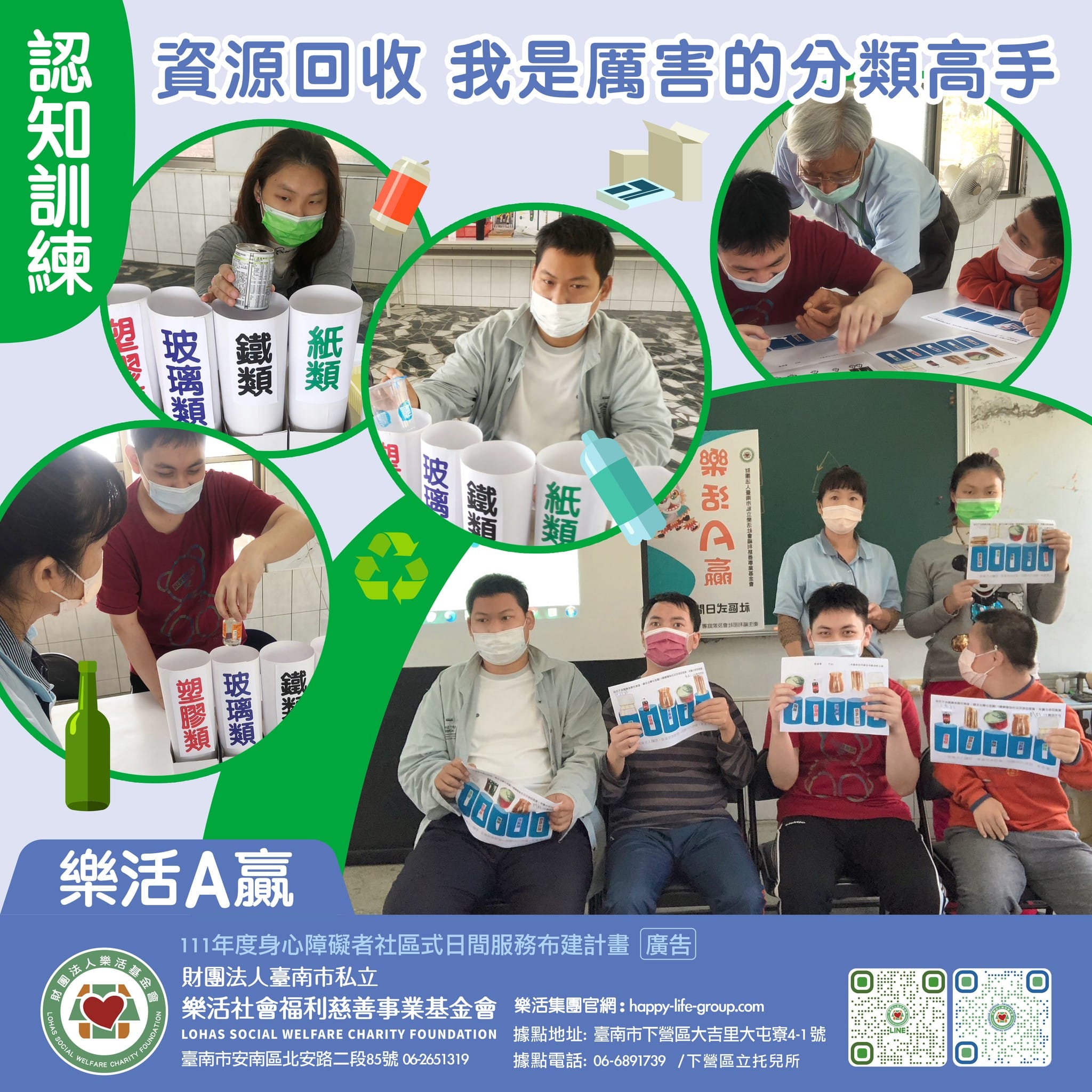 樂活A贏 認知訓練 資源分類 垃圾分類做到好 世世代代沒煩惱 青山綠水無限好 珍惜地球做環保 樂活A贏 熱烈招…