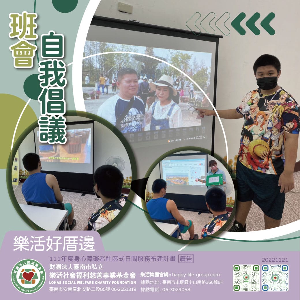 樂活好厝邊~持續招生中 自我倡議-班會活動 智青假日開心出遊 在班會活動上熱烈的討論 出遊的開心與快樂 本周社…