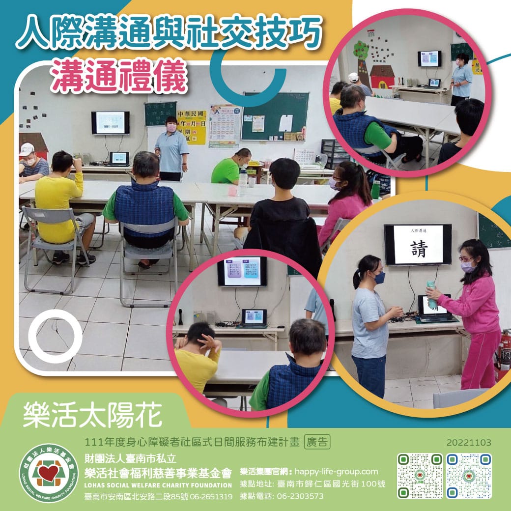 樂活太陽花 人際關係與社交禮儀 青年們一起學習溝通禮儀 從各種情境中一起學習「請、謝謝、對不起」 讓我們做一個…