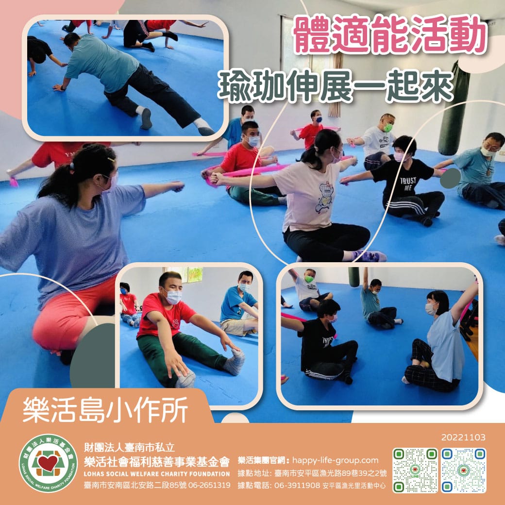 樂活島小作所 瑜珈伸展一起來 「1、2、3、4…..」 大家認真數數 左邊拉完換右邊 智青的柔軟度都很好 各種…