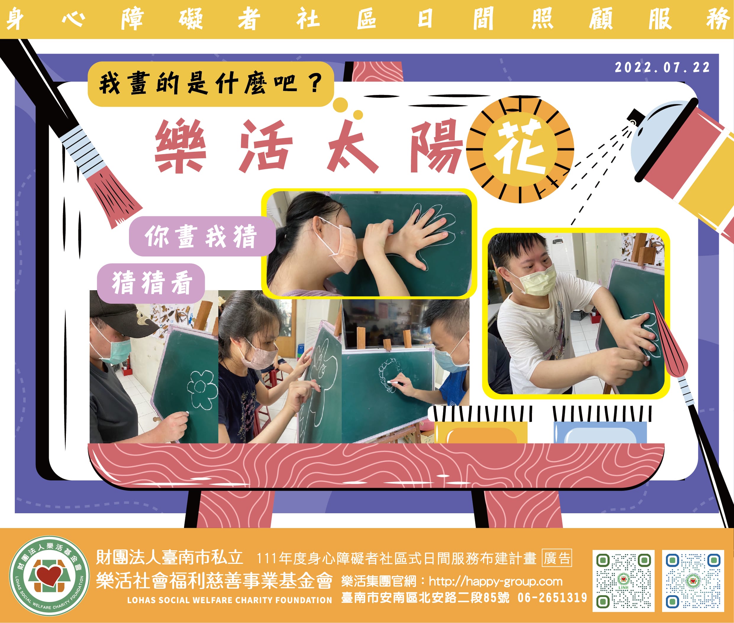 太陽花青年今天進行你畫我猜活動 青年們拿手絕活畫技 畫出許多栩栩如生的圖畫讓我們猜猜看這是什麼東西 是蘋果樹、…
