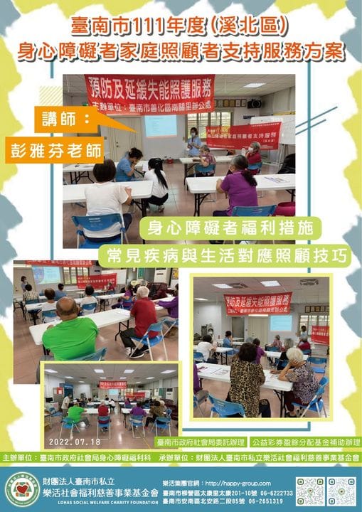 【111年度身心障礙者家庭照顧者支持服務-溪北區】身心障礙者福利措施常見疾病與生活對應照顧技巧講座
