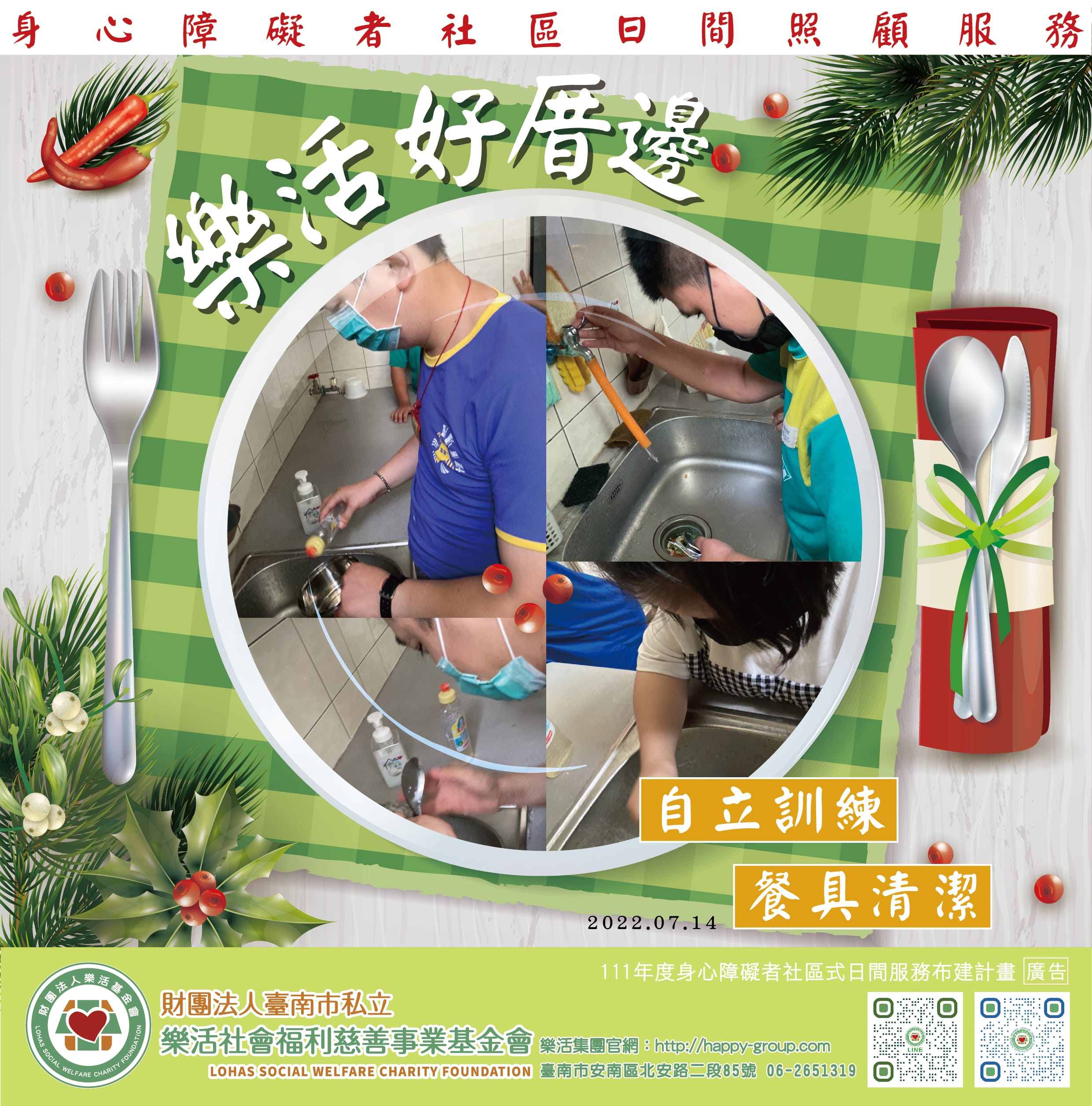 吃飯時注意飲食的安全與衛生 手上使用的餐具呢? 樂活好厝邊的專業工作人員引導夥伴們 認知並學習如何清潔使用的餐…