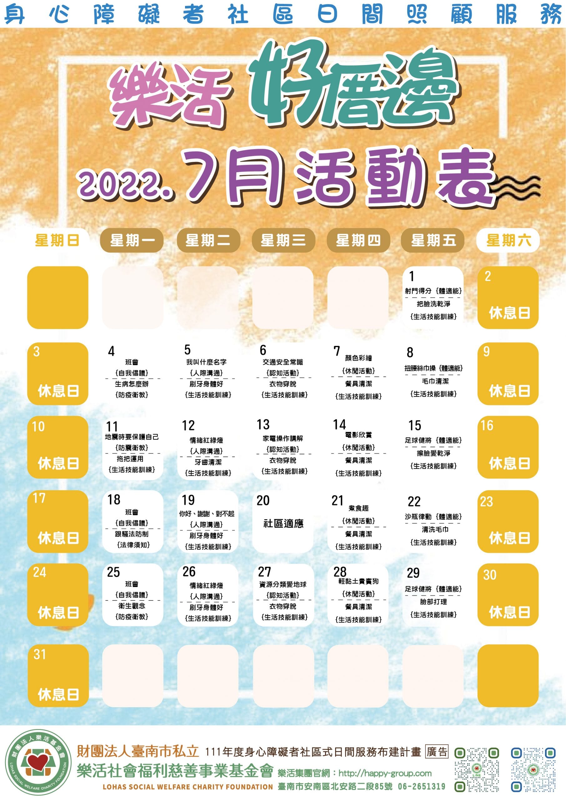創意手做自我倡議 體適能成長團體 各式各樣豐富多元的活動等著你呦在樂活太陽花, 永遠可以學到新的知識與體驗看到…