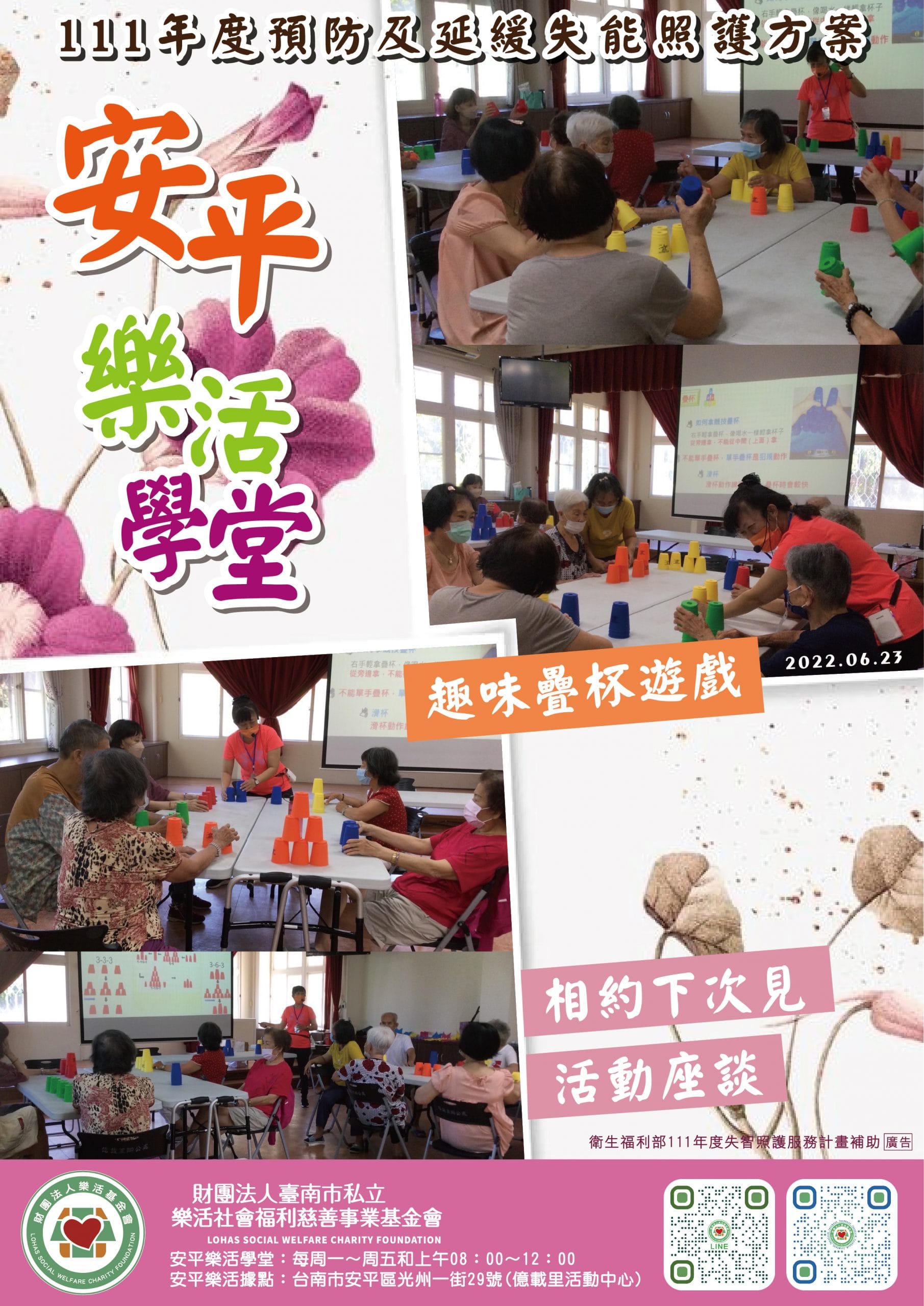 多元活動報到 豐富、多元、快樂、學習、成長 持續招生中 期待歡迎您的加入 只要是設籍在臺南市18歲到64歲 領…