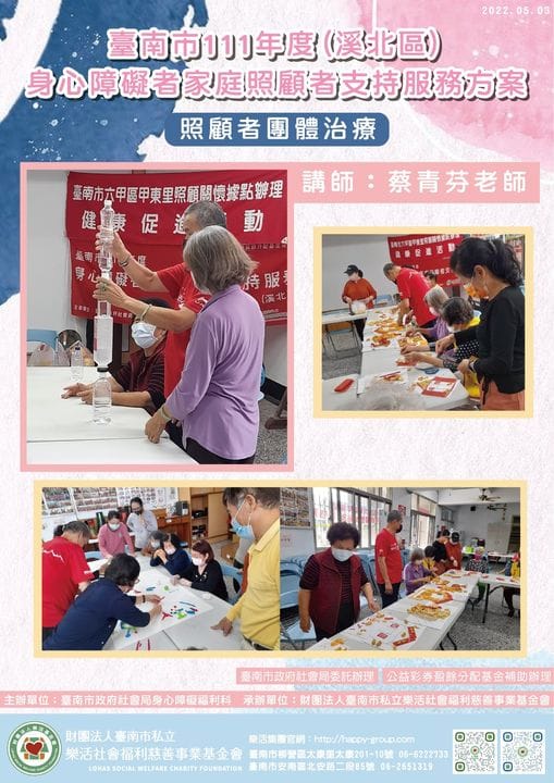 111年度身心障礙者家庭照顧者支持服務-溪北區 🎈🖌照顧者團體治療🖌餅乾、水瓶、黏土,每位長輩都期待著蔡青芬老…
