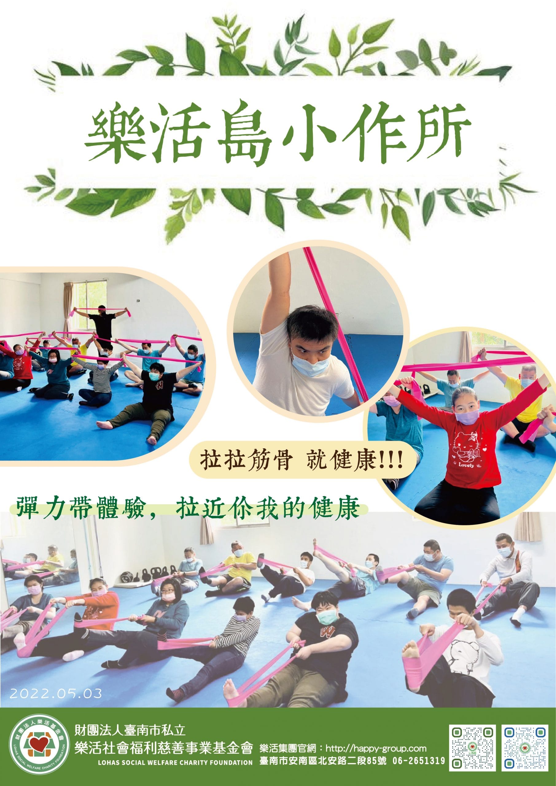 一二三,拉 咦!這不是拔河比賽,而是「彈力帶」 智青們喜歡體驗新事物 各個表情都顯得神采飛揚 還說想要報名「全…