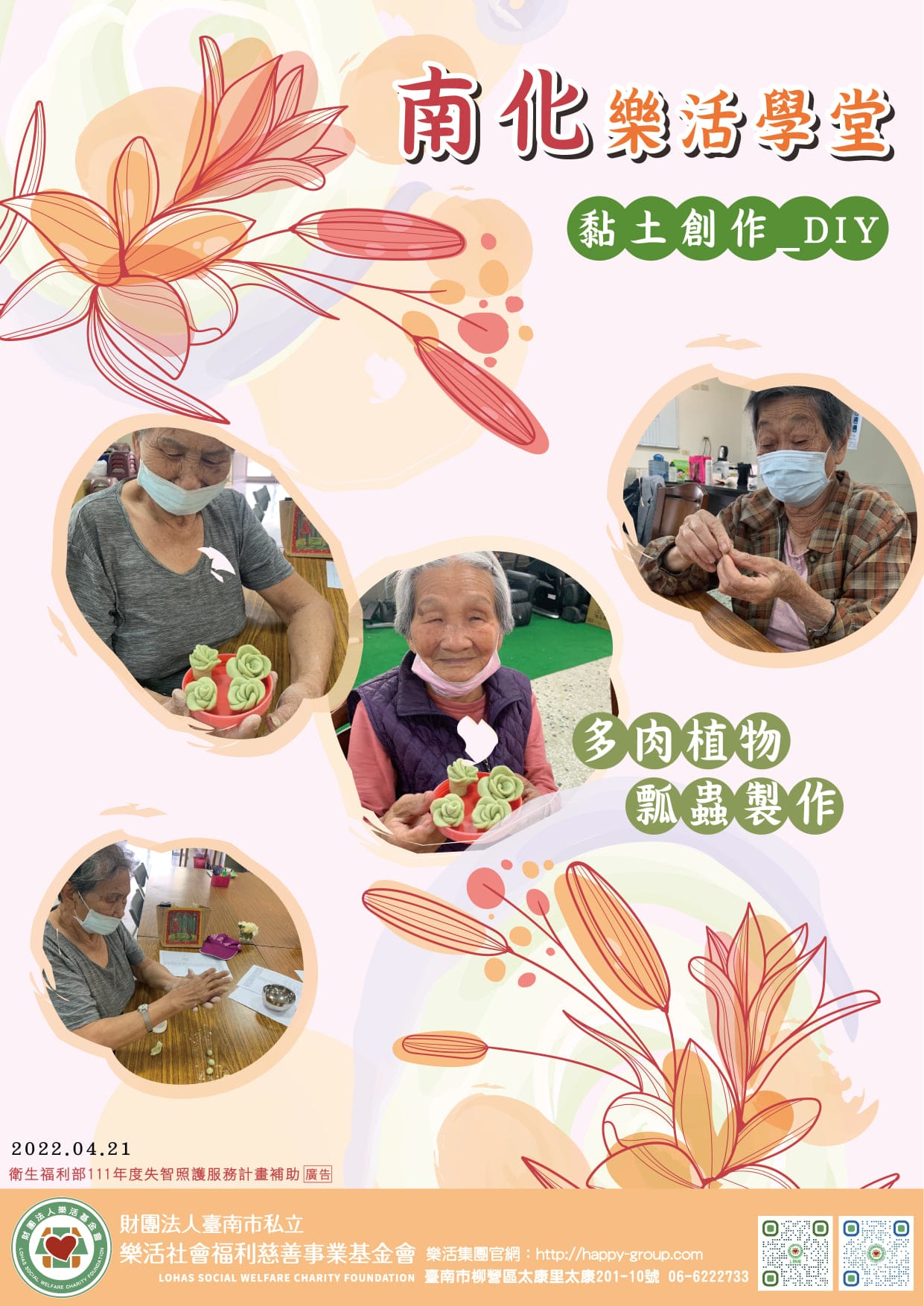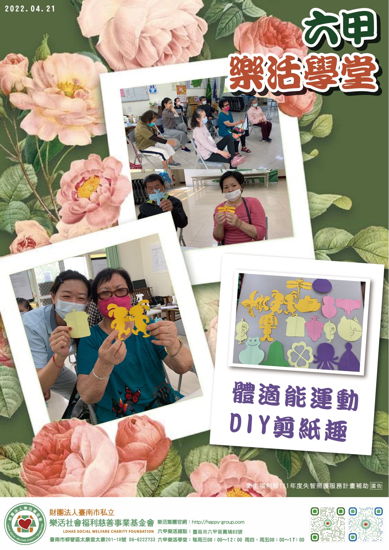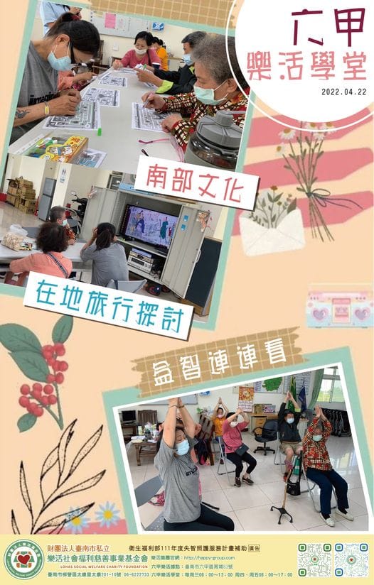 5月份開跑囉 五月份的課程出爐囉 運動健身藝術創作音樂治療認知活動懷舊系列 新增了為期12次的延緩失能方案 以…