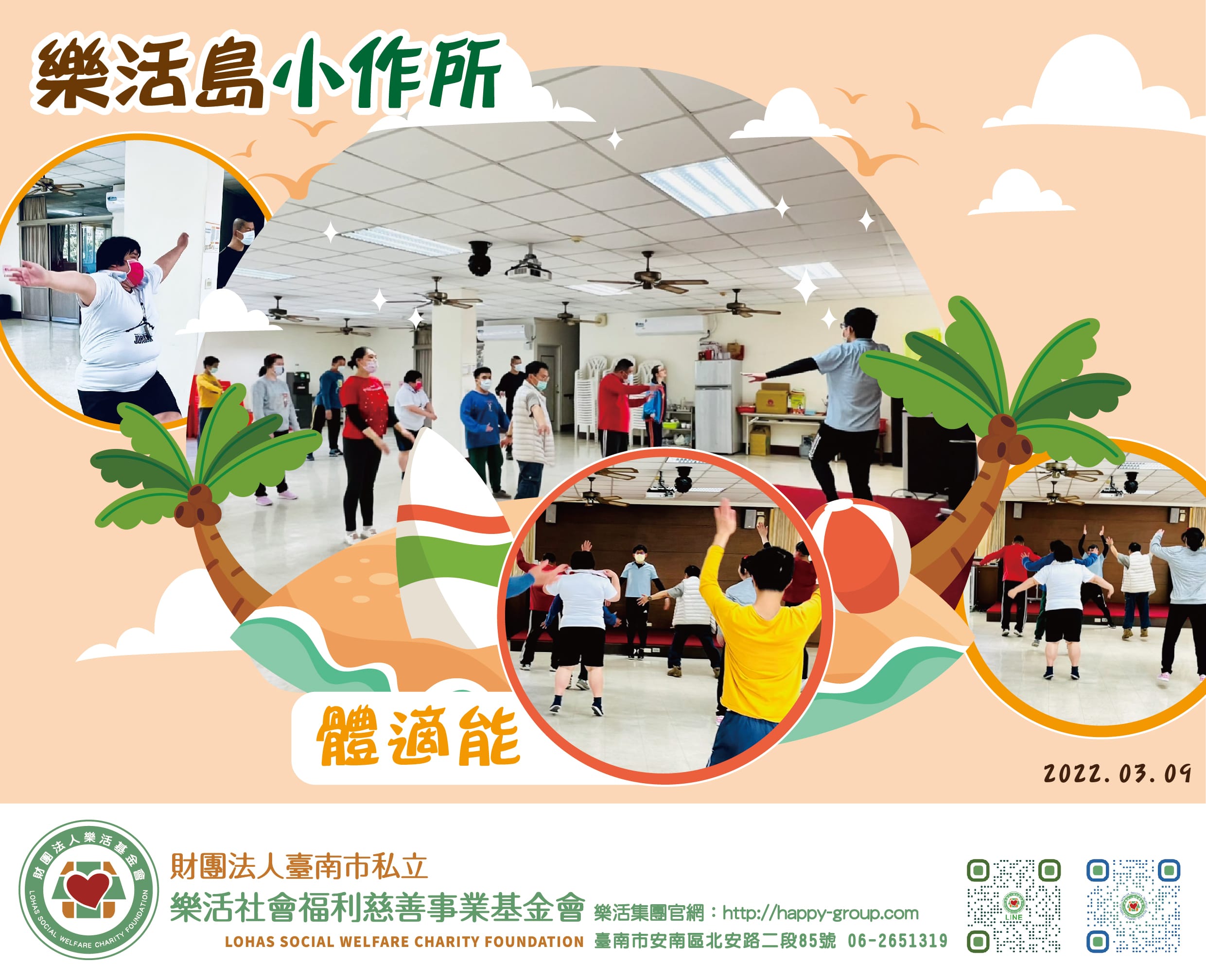 蹦蹦跳跳我們最有活力了 今日樂活島智青認真來運動 平常做代工身體筋骨都非常僵硬 為此,我們需要多一點伸展來來彌…