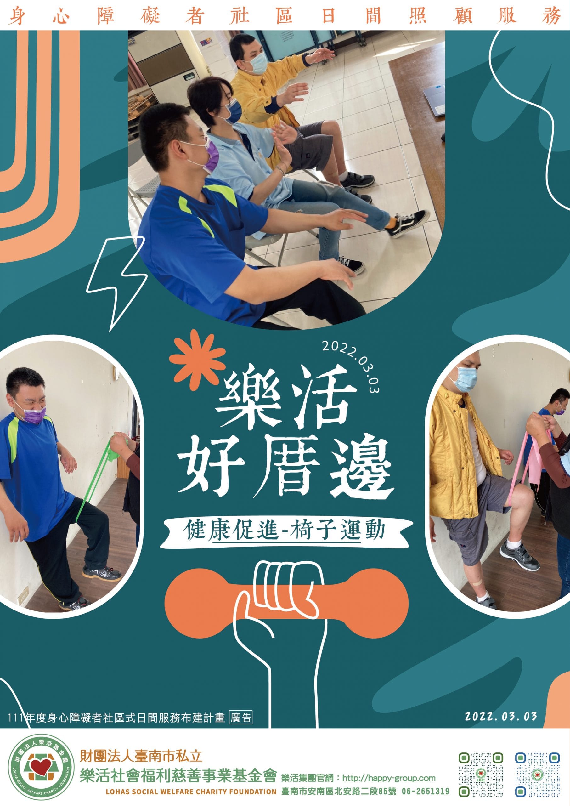 夥伴們一起來椅子運動拉拉手、拉拉腳 大家一起來運動GO GO GO 貼心的服務 持續的學習快樂的成長好厝邊是您…