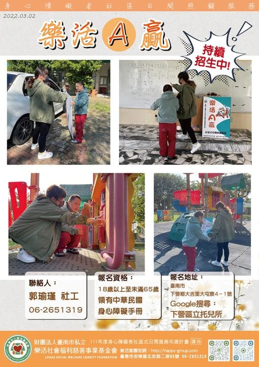 💘 樂 活 A 贏 💘不斷爭取更好的環境,設計最適合服務對象的活動,帶著服務對象一同參與生活,最專業的人員,最…