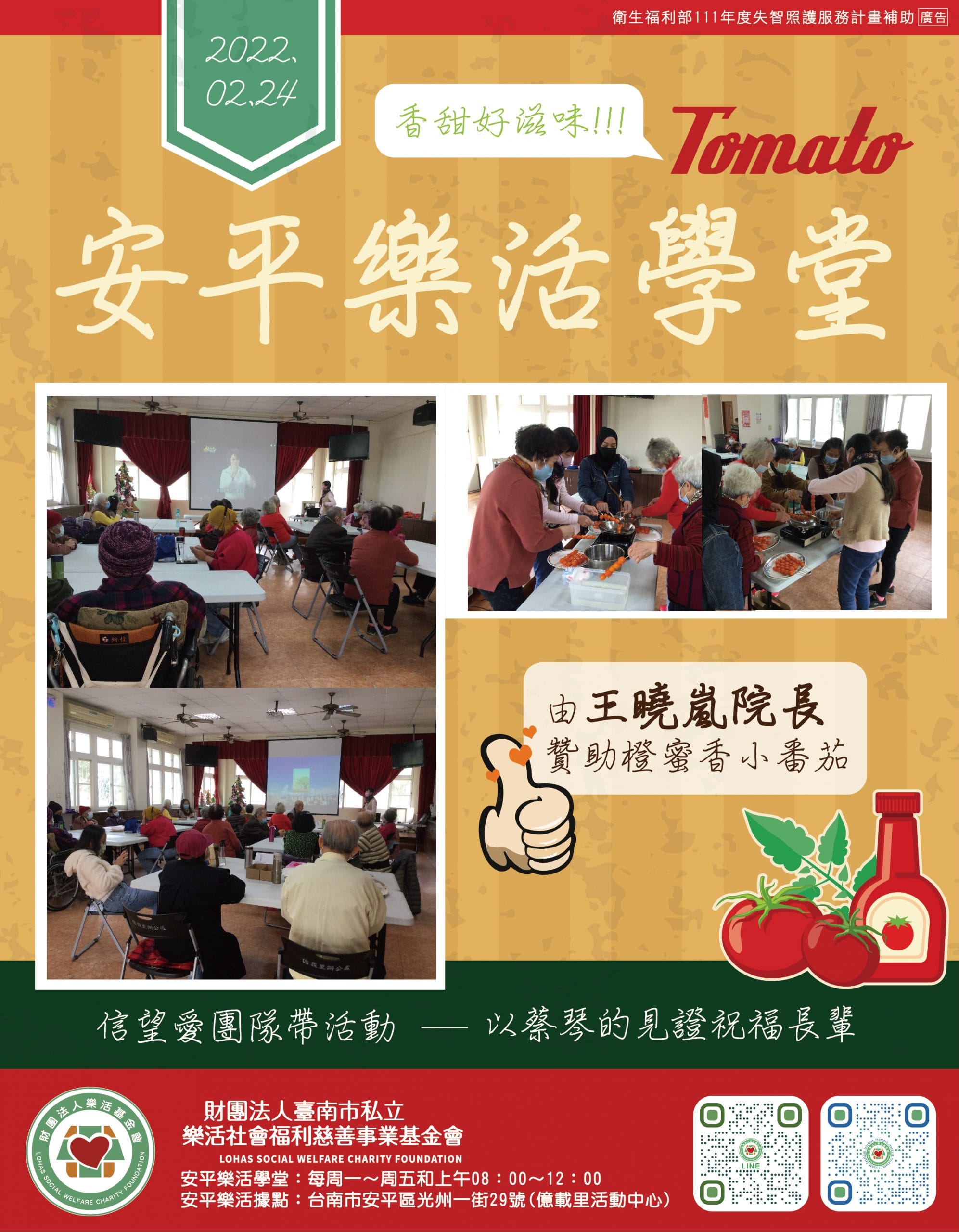 安平樂活學堂的億群好朋友 今天由信望愛團隊來帶活動 透由蔡琴的見證來分享愛跟盼望 也帶領據點長者們一起製作糖葫…