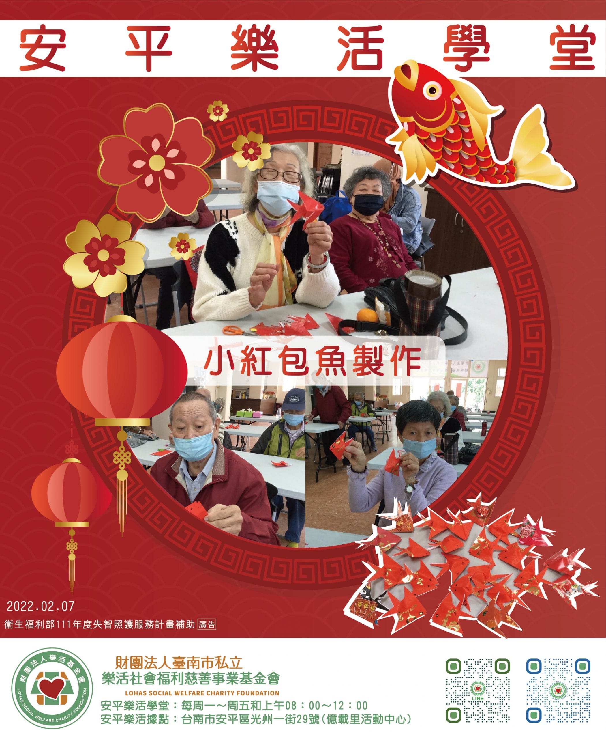 安平樂活學堂的億群好朋友 大家新年好喜慶的氛圍依然在據點當中 今天社工帶領大家做小的紅包魚 大家都做得很開心呢…