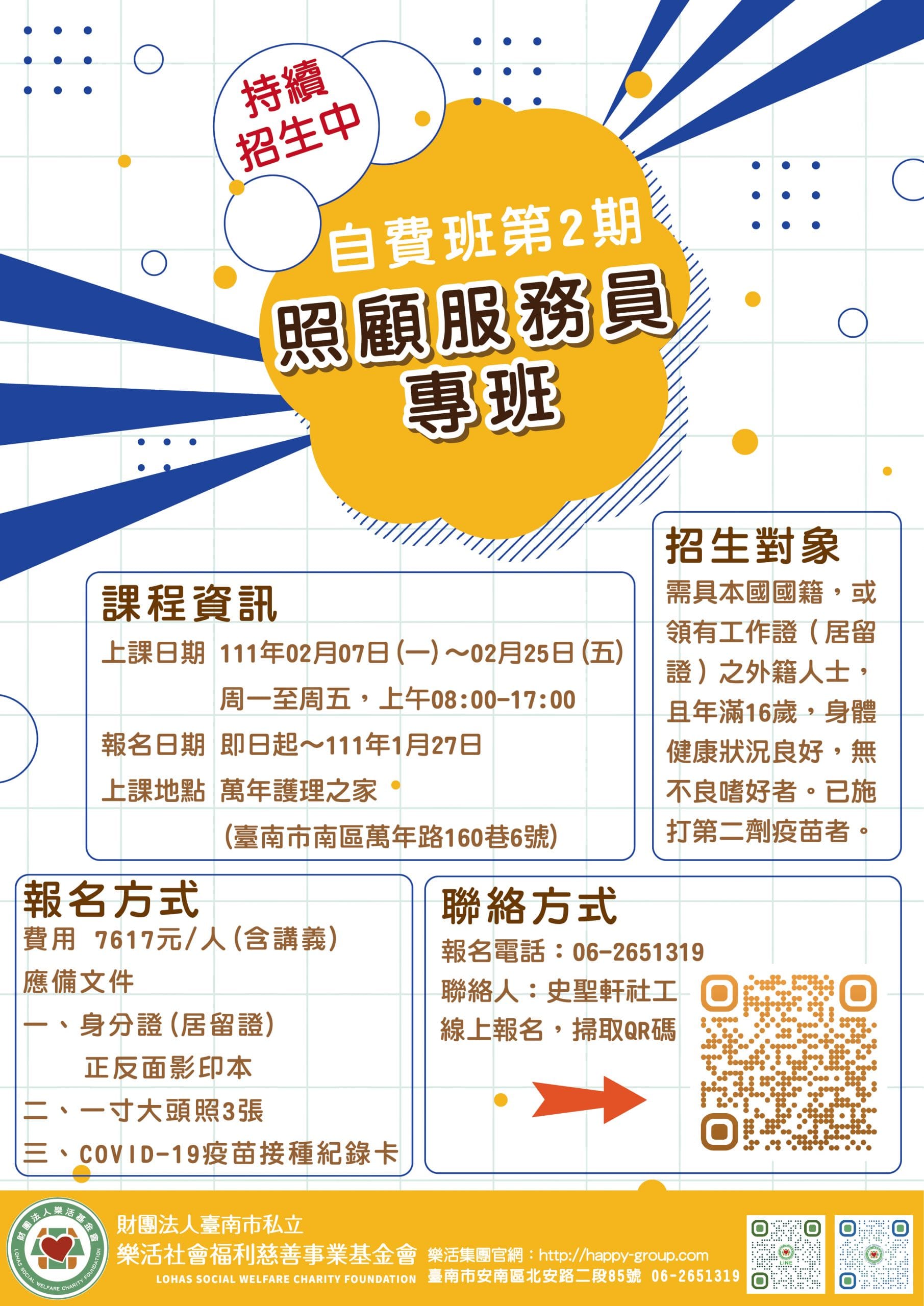 【樂活基金會】照顧服務員專班-自費班第1期