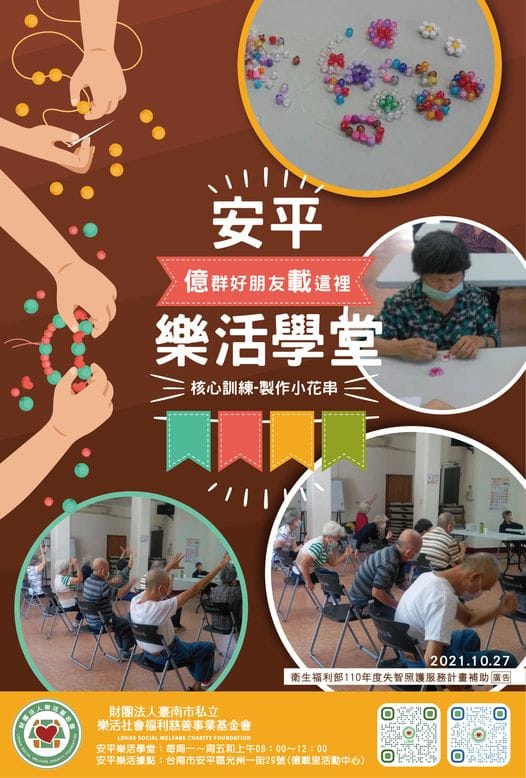 安平樂活學堂的億群好朋友 大家一起製作小花串 對我們來說很簡單對我們的長者來說是有挑戰的但做完非常有成就感 不…