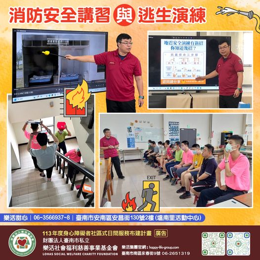 樂活甜心 消防安全講習與逃生演練 很榮幸邀請到臺南市政府消防局安和消防分隊至甜心進行消防講習,讓智青們在火災和…